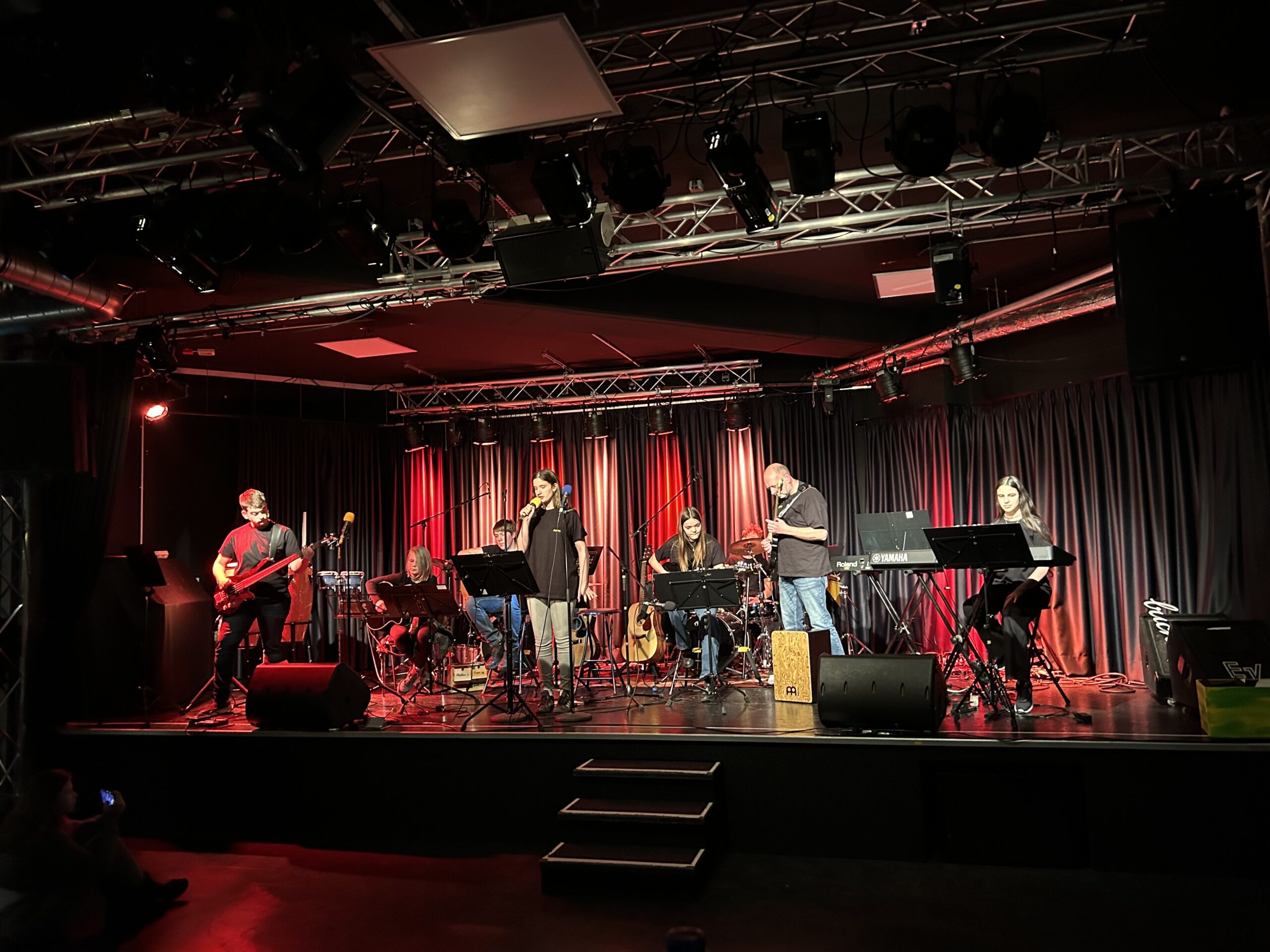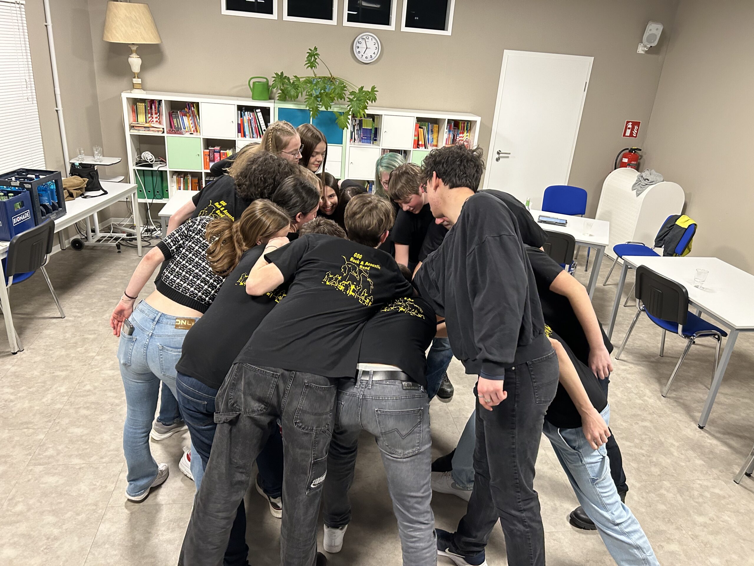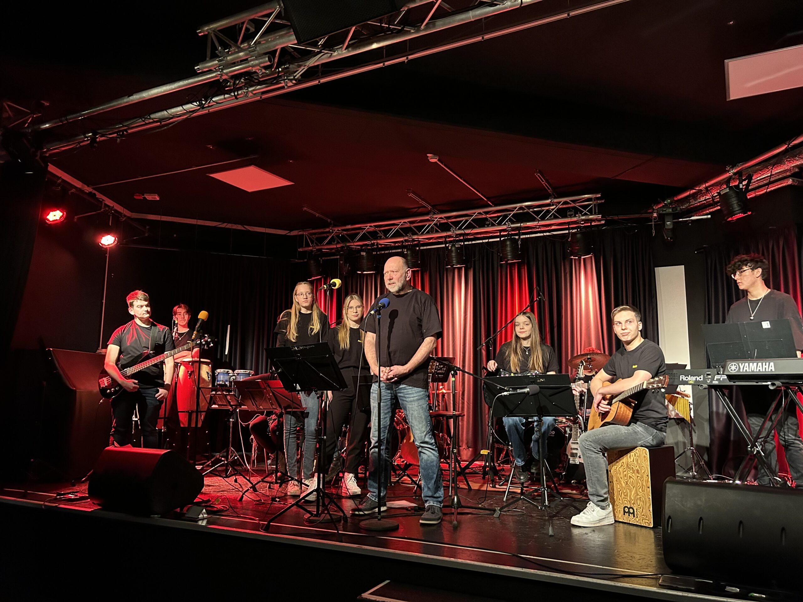 Wenn unsere Schulband zum Konzert einlädt, sind gute Musik und gute Stimmung garantiert. Zum Abschluss des 1. Halbjahres zeigten die jungen MusikerInnen um Musiklehrer Holger Reuning, was sie in den letzten Monaten erarbeitet haben. Mal ausgelassen, mal rockig, mal eher ruhig – die Songauswahl reichte von bekannten Oldies bis zu aktuellen Hits und traf den Geschmack des Publikum im Veranstaltungsraum des Hersfelder Buchcafés auf den Punkt. Wieder einmal zeigten die Bandmitglieder in unterschiedlichen Besetzungen und zum Teil an wechselnden Instrumenten, was musikalisch in ihnen steckt. Für Holger Reuning, der sich im Sommer in den Ruhestand verabschiedet, war es das letzte Konzert mit der Band im Buchcafé. Zum Glück gibt es am Schuljahresende ein großes Abschlusskonzert auf dem Schulhof der Geistalschule, zu dem alle Interessierten herzlich eingeladen sind.