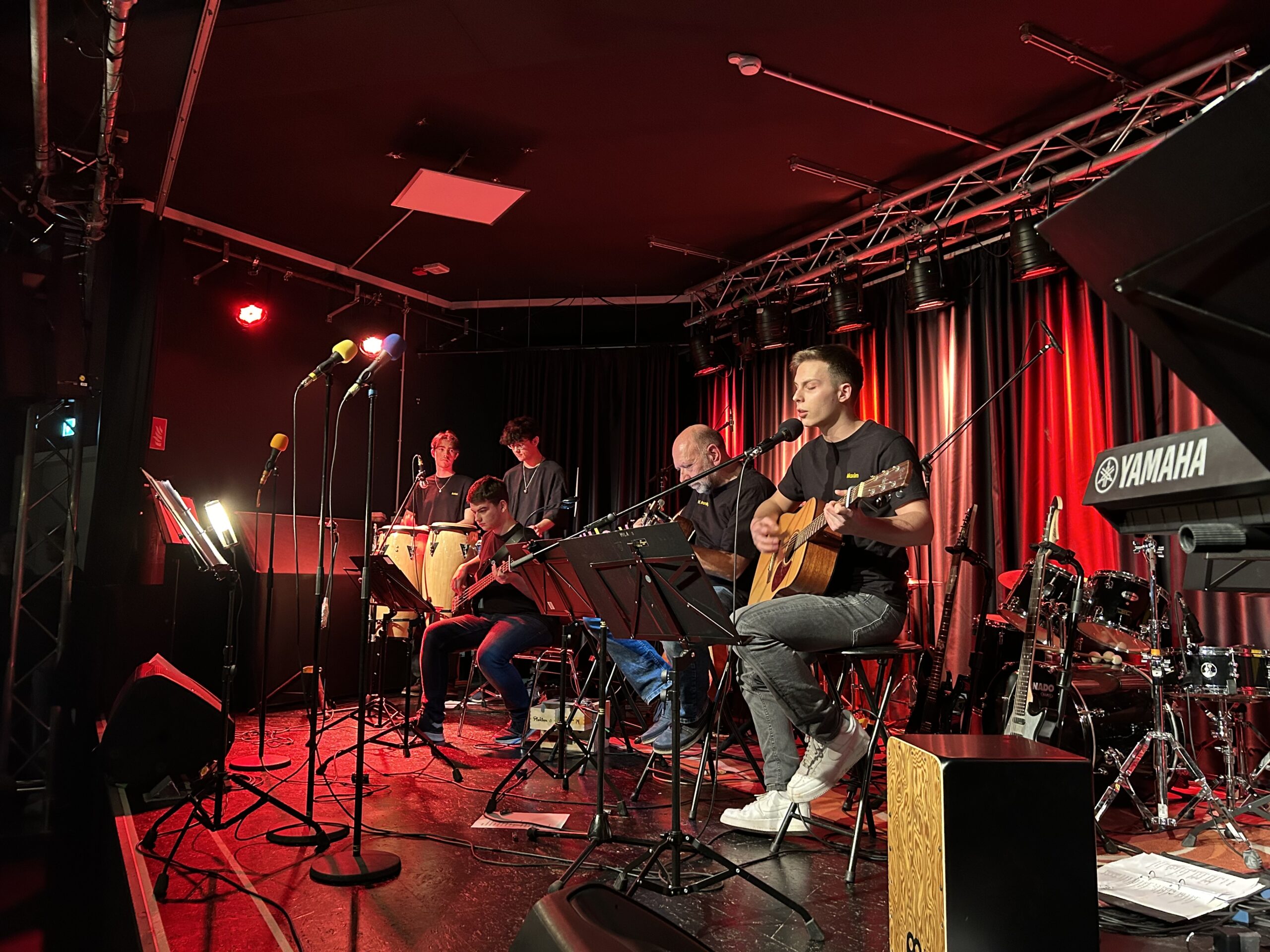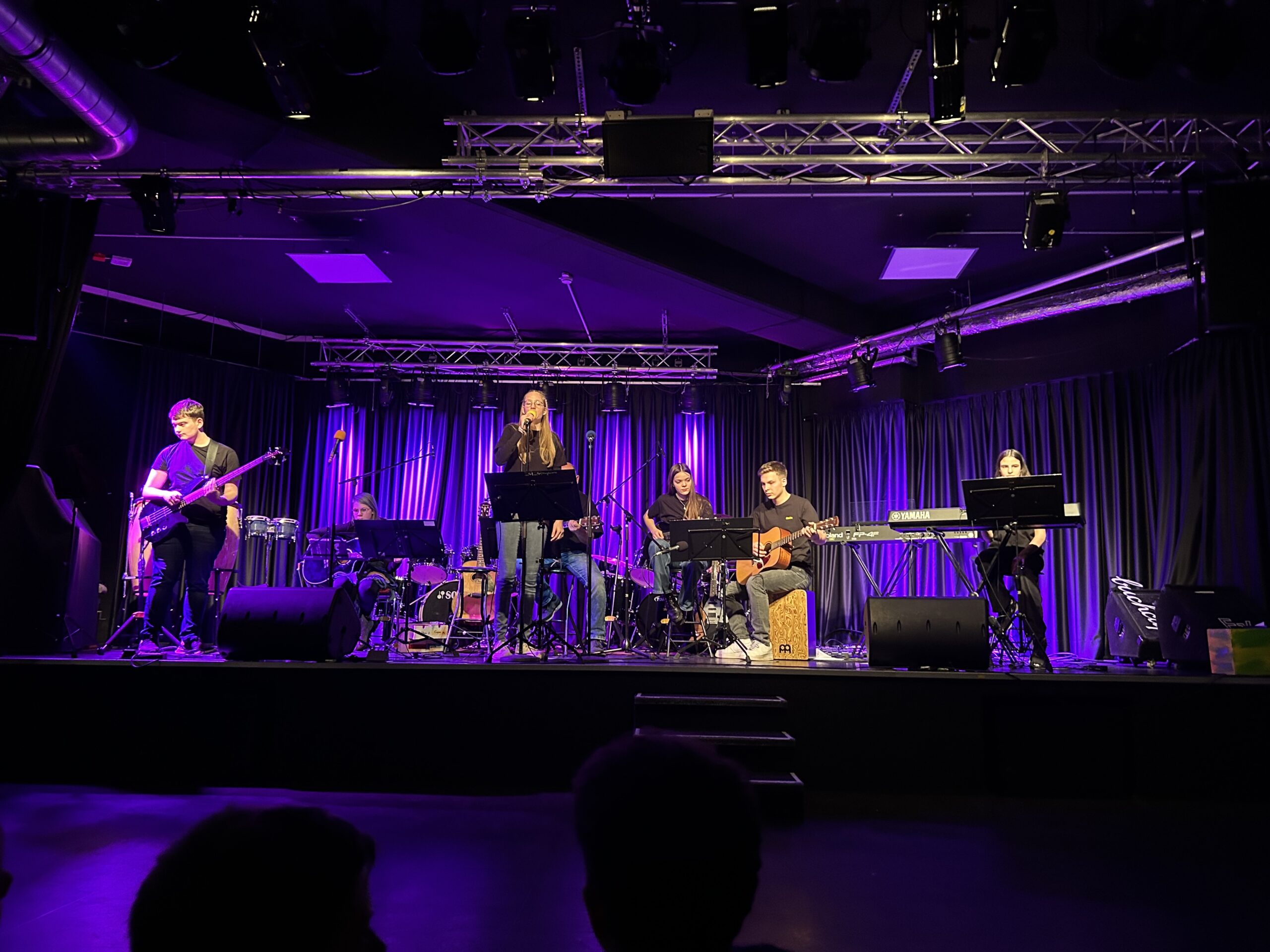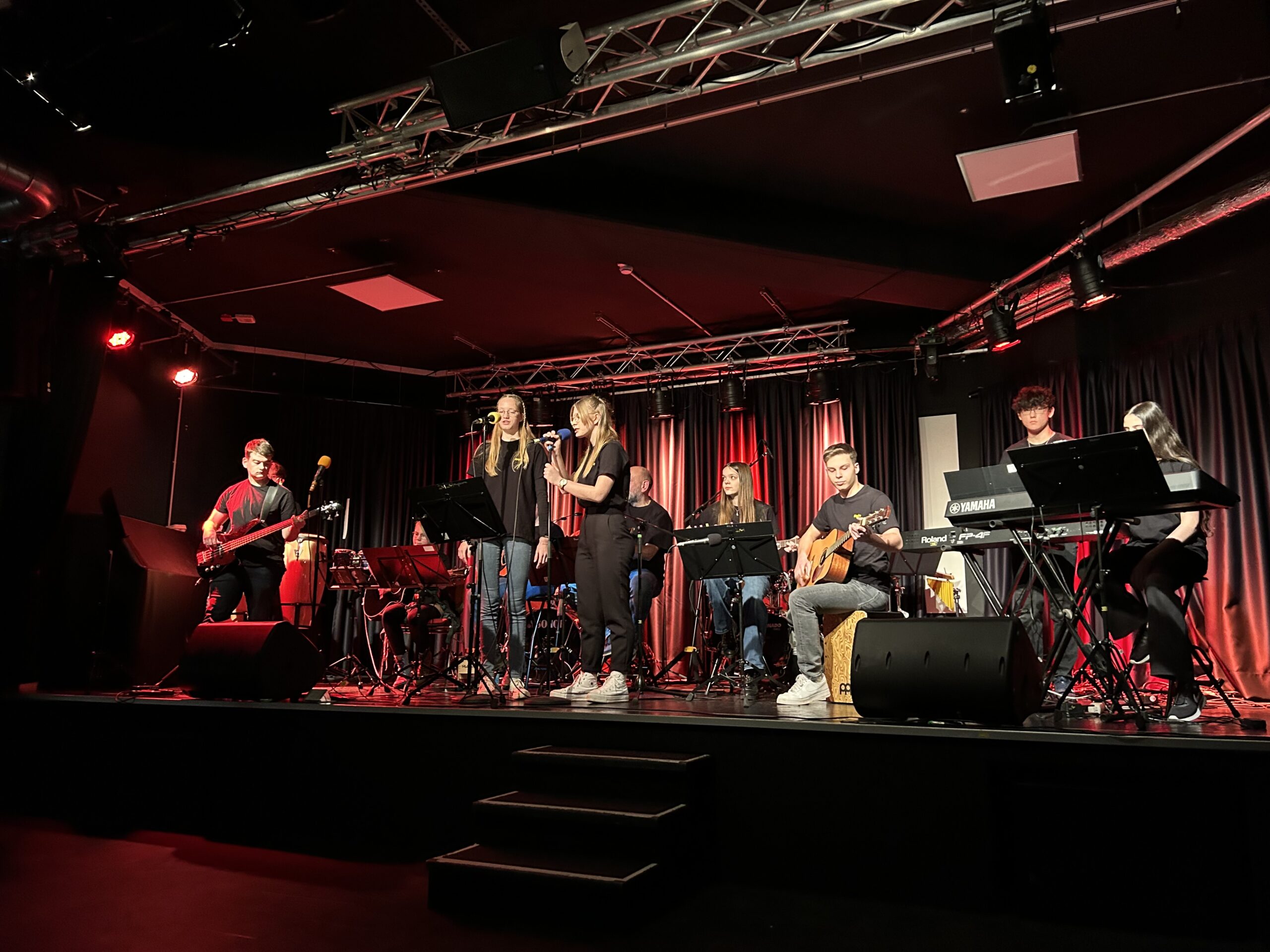 Wenn unsere Schulband zum Konzert einlädt, sind gute Musik und gute Stimmung garantiert. Zum Abschluss des 1. Halbjahres zeigten die jungen MusikerInnen um Musiklehrer Holger Reuning, was sie in den letzten Monaten erarbeitet haben. Mal ausgelassen, mal rockig, mal eher ruhig – die Songauswahl reichte von bekannten Oldies bis zu aktuellen Hits und traf den Geschmack des Publikum im Veranstaltungsraum des Hersfelder Buchcafés auf den Punkt. Wieder einmal zeigten die Bandmitglieder in unterschiedlichen Besetzungen und zum Teil an wechselnden Instrumenten, was musikalisch in ihnen steckt. Für Holger Reuning, der sich im Sommer in den Ruhestand verabschiedet, war es das letzte Konzert mit der Band im Buchcafé. Zum Glück gibt es am Schuljahresende ein großes Abschlusskonzert auf dem Schulhof der Geistalschule, zu dem alle Interessierten herzlich eingeladen sind.
