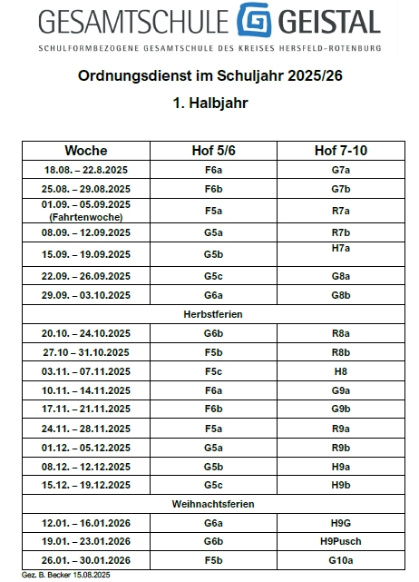 Ordnungsdienst Ordnungsdienst Aktuelle Informationen Kalender YouTube-Kanal Speisenplan Ordnungsdienst Downloads Seitenstatistik Bildergalerie Aktuelle Informationen Kalender YouTube-Kanal Speisenplan Ordnungsdienst Downloads Seitenstatistik Bildergalerie Ordnungsdienst Schuljahr 2025/26 1. Halbjahr